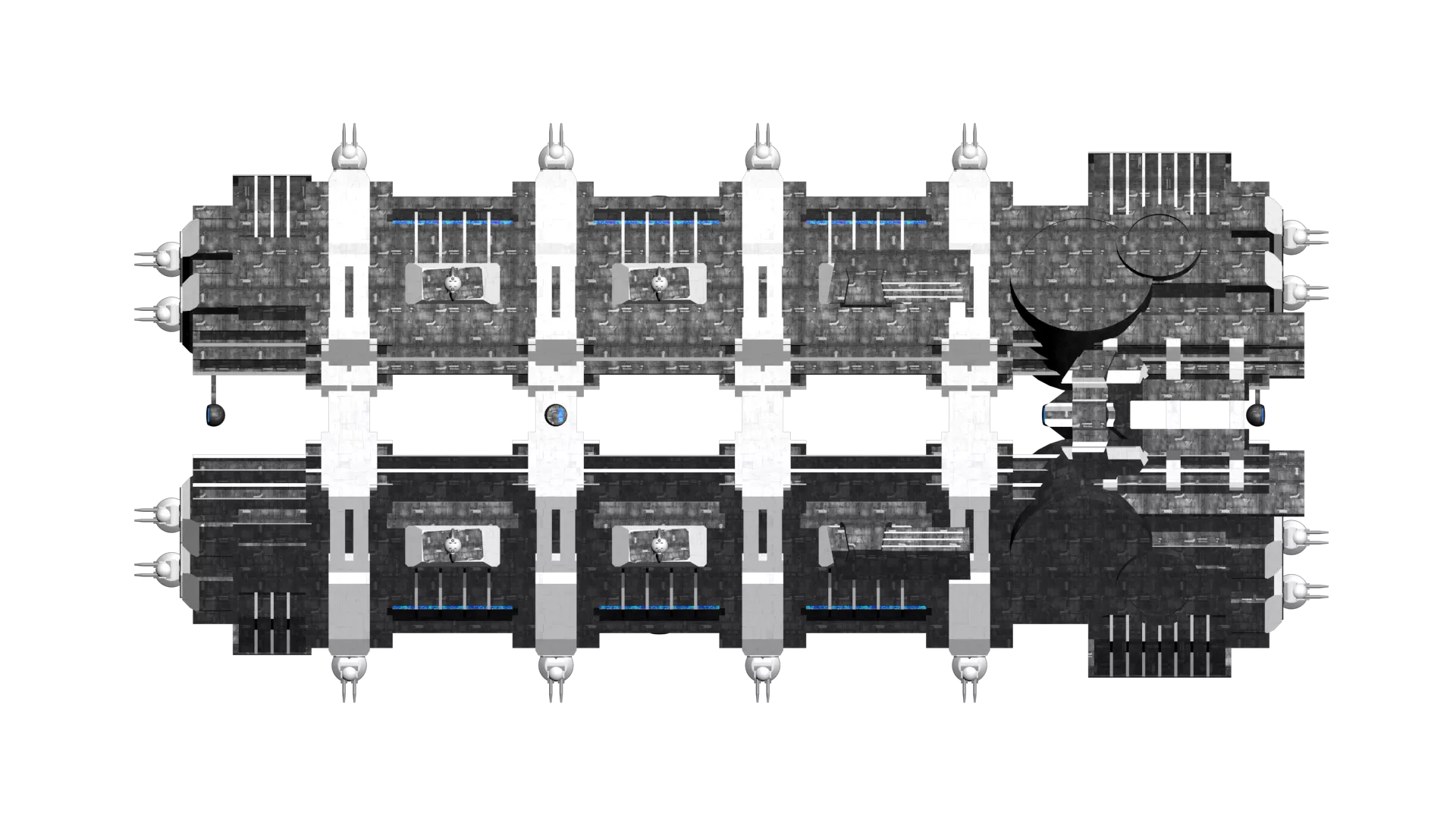 | Головные орудия | Все орудия (ракетные) | Все турели (ракетные) | Расположение турелей | Совместимое оружие | Совместимые ракеты |